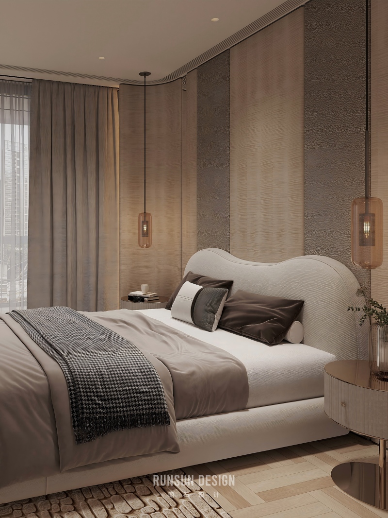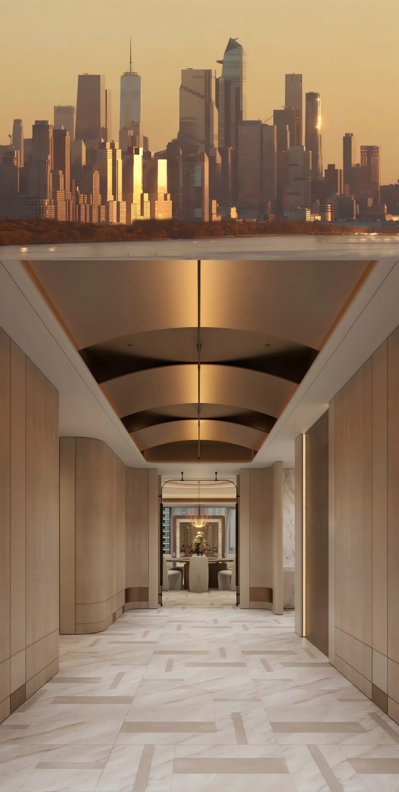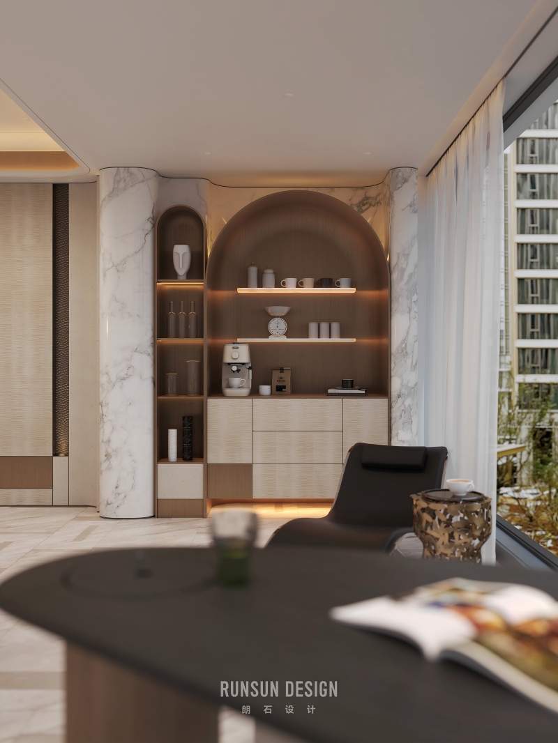 巨大的落地窗将都市天际线框成一幅流动的巨幕