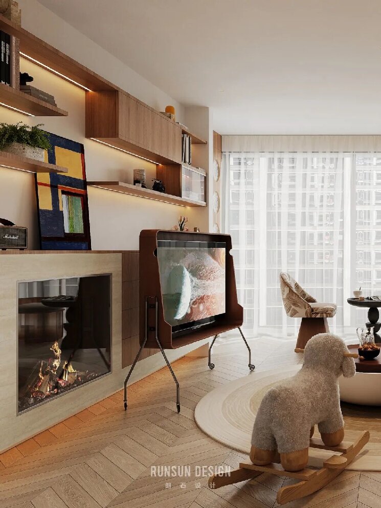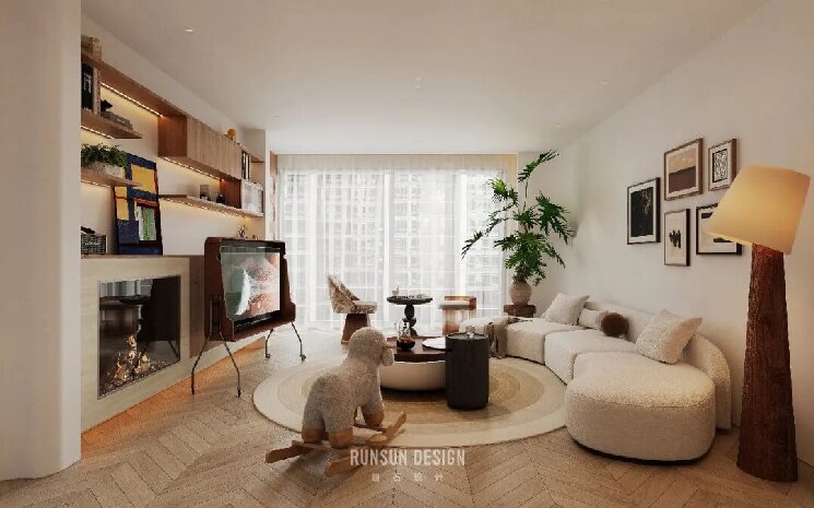 搭配壁炉暖意与绿植生机