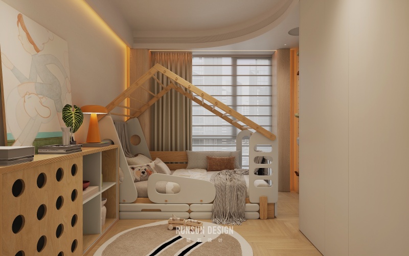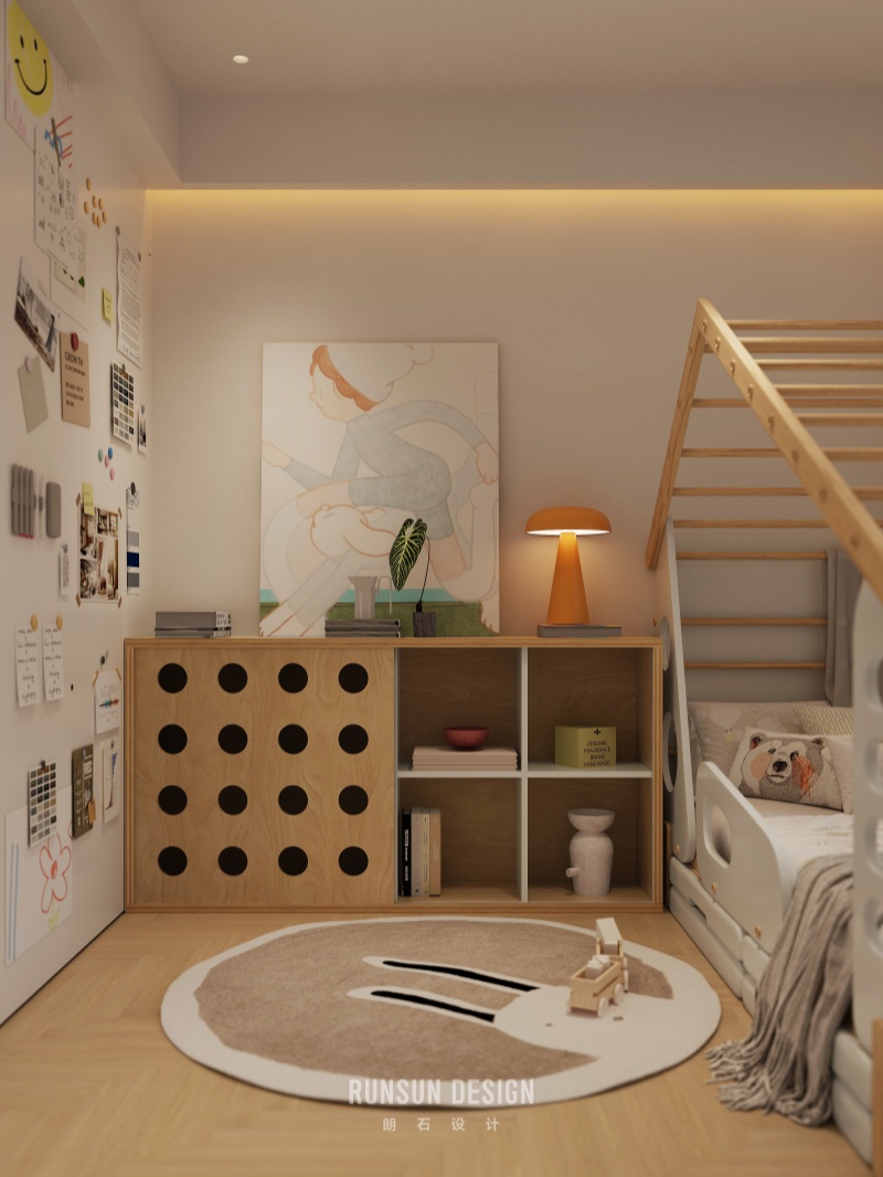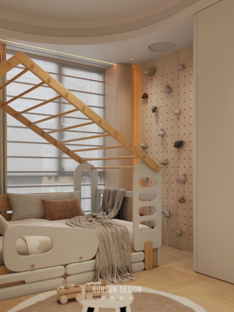 Here, plain white serves as paper, oak as ink. We strip away unnecessary forms and piled‑up ornaments, leaving life room to breathe. And “growing upward” is the quiet hope hidden in that blankness—a home that walks beside the child, from tottering first steps to the far mountains and seas, always preserving the courage and foundation to rise.
