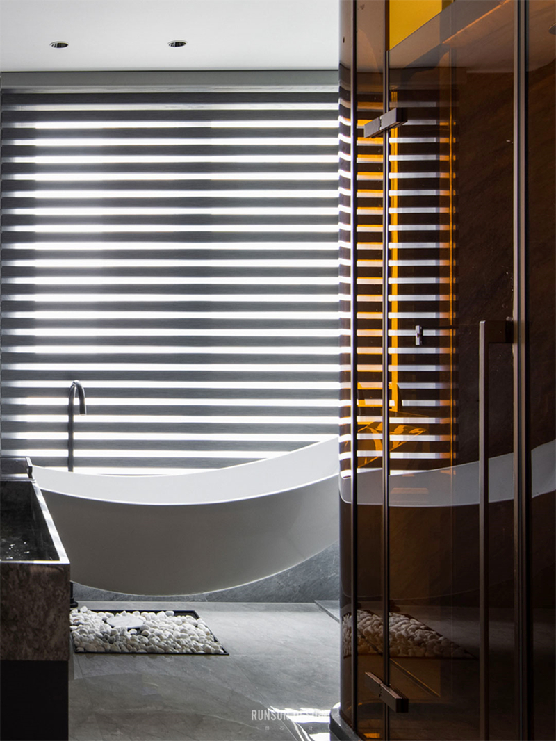本案在设计过程中,我们为了营造更加时尚的氛围,运用各类材料打造光影投射的效果,使得最后的落地效果更具有时尚感与空间感。