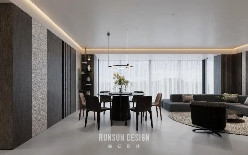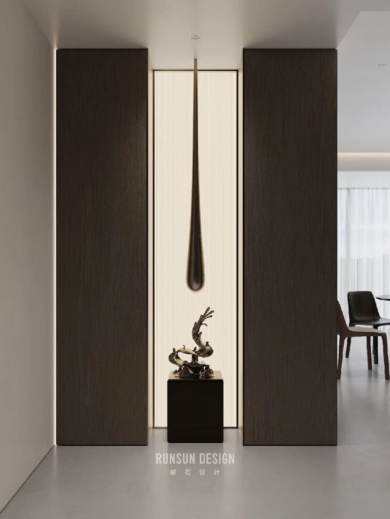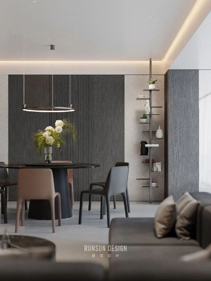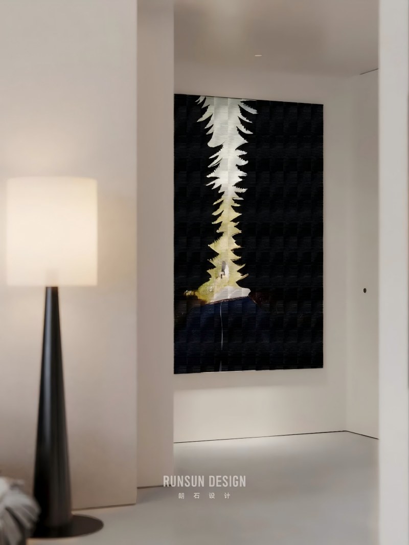 From afar, the layered forest appears as a misty whole; Up close, each branch stands distinct, ordered and clear.  Capturing the from Eastern aesthetics— where “mist obscures towers, moonlight bewilders ferry crossings”— and transforming it into a spatial philosophy for modern living.  Using ink-toned hues as its bone structure, light and shadow as its breath, within a profound palette of black, white, and gray, we evoke a serene, ordered tranquility, like mist gently shrouding woods and valleys.