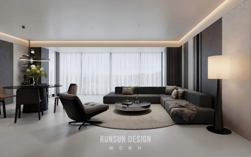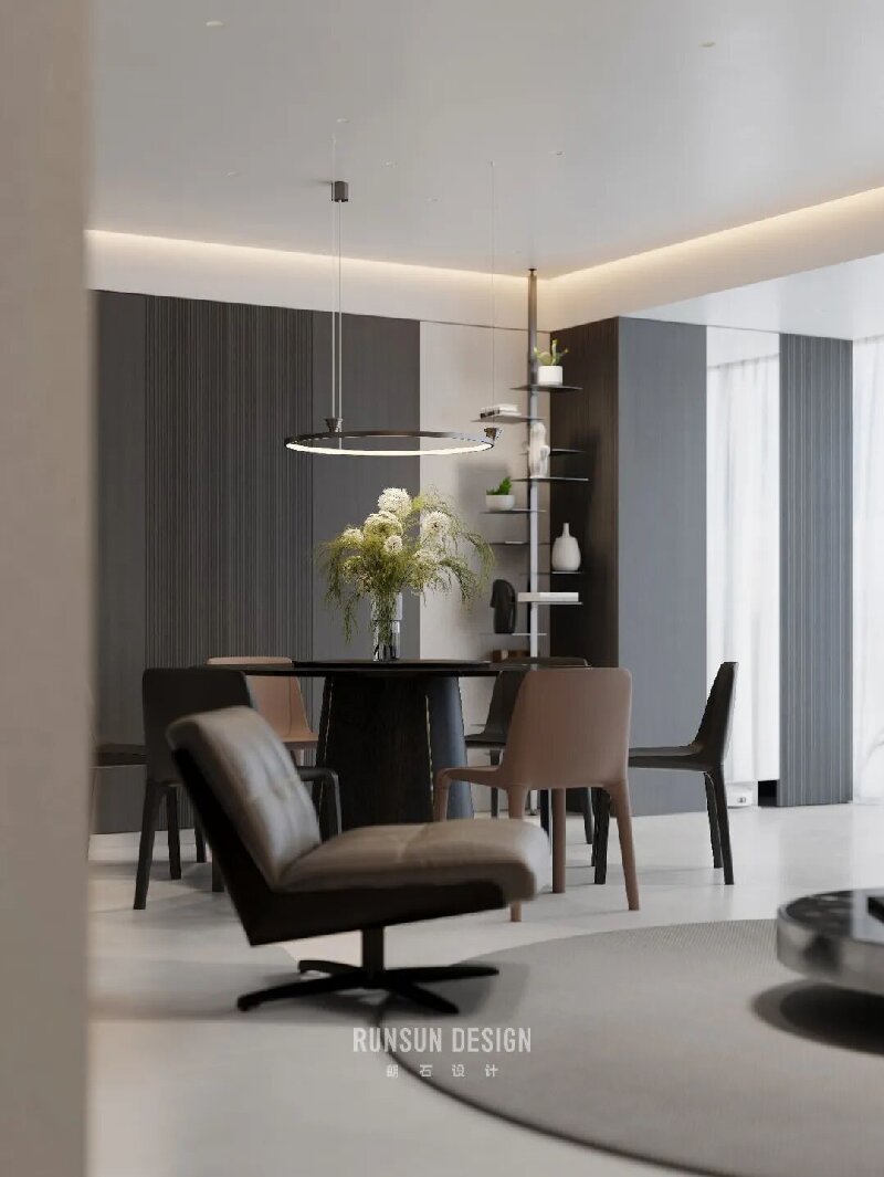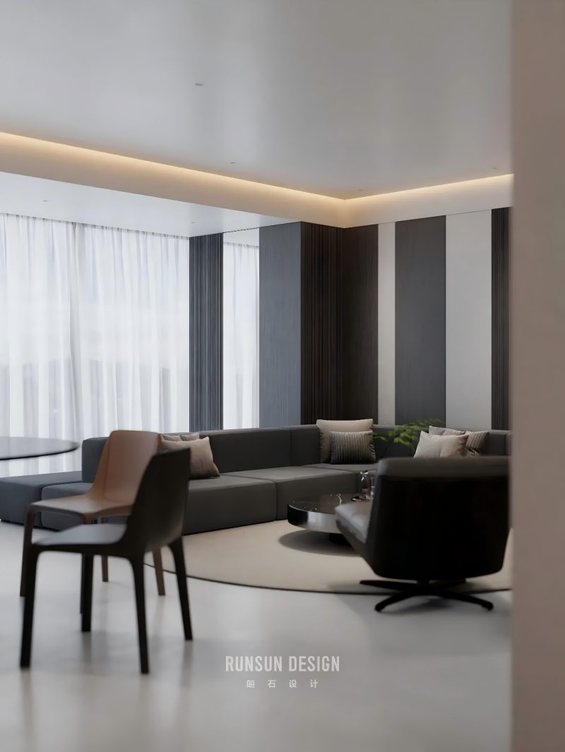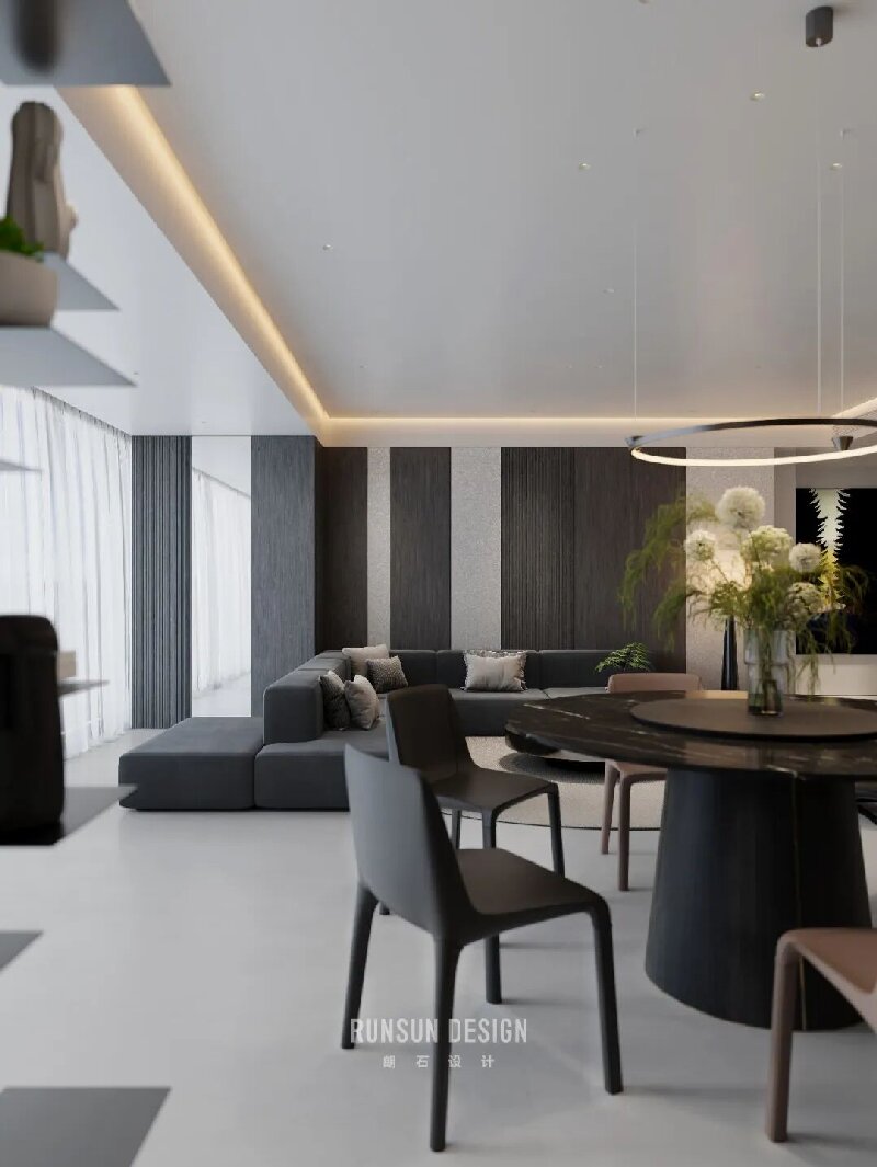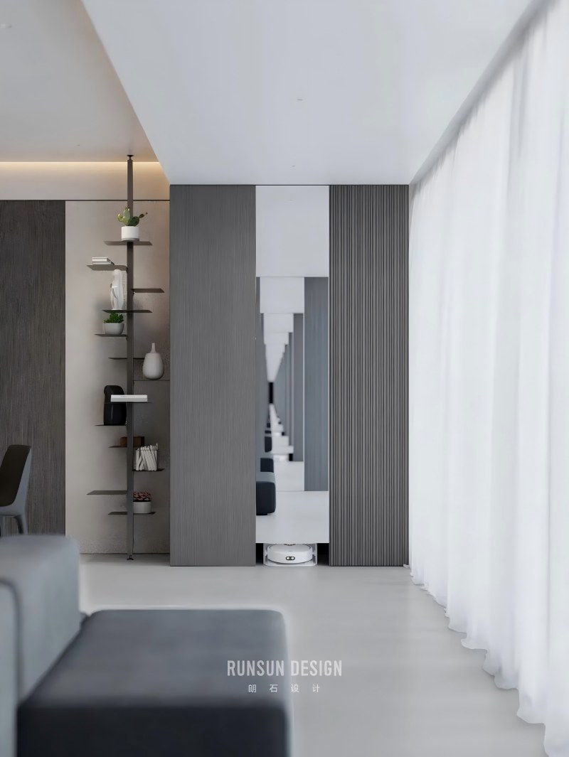From afar, the layered forest appears as a misty whole; Up close, each branch stands distinct, ordered and clear.  Capturing the from Eastern aesthetics— where “mist obscures towers, moonlight bewilders ferry crossings”— and transforming it into a spatial philosophy for modern living.  Using ink-toned hues as its bone structure, light and shadow as its breath, within a profound palette of black, white, and gray, we evoke a serene, ordered tranquility, like mist gently shrouding woods and valleys.