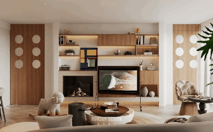 搭配壁炉暖意与绿植生机