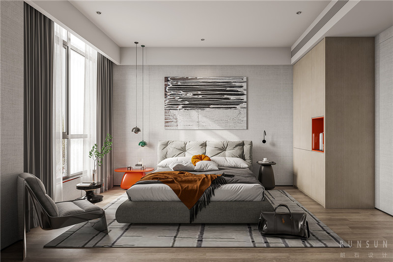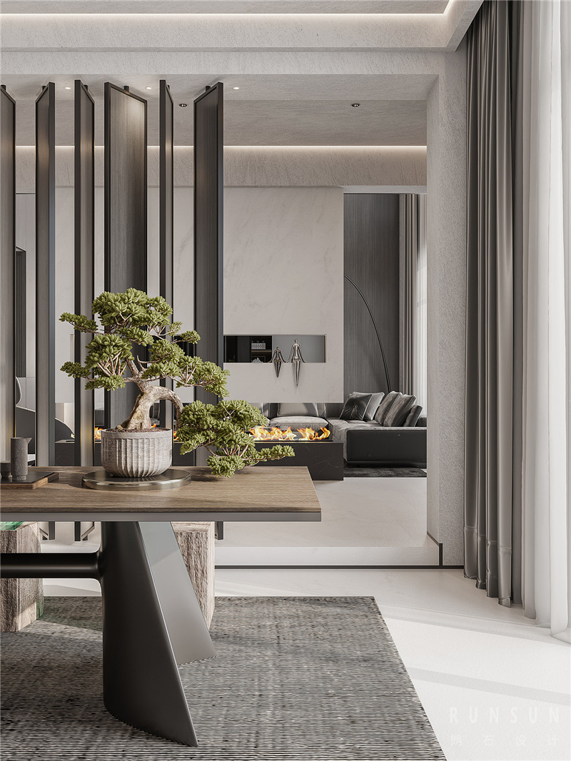 It's a quiet space. We have added Chinese elements and modern simple elements to the space. The color of gray and black is steady and powerful, and the green dotted in it is full of the breath of spring.